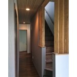 階段の長さを約90㎝伸ばしして滑らかな階段にしました。 かつ、玄関からは明かりが取れるように造作でつくりました。