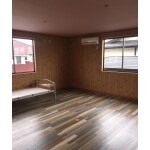壁・天井・床すべてが異なる色、素材であるのにまとまりのあるセンスあふれるお部屋。もう一つの洋室も床に青が混ざっていのがポイント。壁も木で落ち着きある空間に。