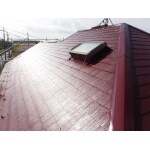 割れヒビ補修し、日本ペイント㈱サーモアイSiの色クールマルーンで塗装施工後