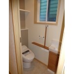トイレ背面に飾り棚&収納スペースを希望されたので、タンク後ろを手前に出して、スペースを設けました。 お客様の希望通りのトイレになりました。
