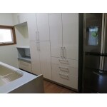 使いやすいキッチンと大容量の収納を取り付けたい。地震の時に倒れてこないように壁に固定する収納にしたい。