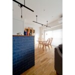お家全体は白を基調とし、中心となるLDKに碧色のタイルを取り入れることによって爽やかな空間に。 床はご要望の無垢材を敷き、爽やかな中にも優しさを感じられる空間を作り上げました。
