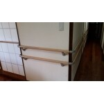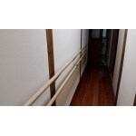 手すりの設置の際には、手すり取付用の下地が必要なので壁を仕上げる前に造作が必要でした。 手すりは元々は1段だったのですが、やはりもう少し上の方がいいと言う事になり、もう一段取り付けまた。
