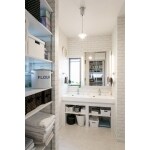 傷んでいた使わないサンルームを撤去し、行政の耐震診断を受診して指示に従い補強。床下に断熱材を入れ、まず、安全で快適な環境を整えました。 奥まったキッチンは家事をしていると孤立してしまいそうで、客間の和室もほとんど使いません。とのことなのでダイニングを中心とした間取りに変更。 キッチンはL型の対面にしてカウンターを設置。ダイニングと直接つながることでご家族やお客様と近づき、話が途切れずに支度ができます。和室はリビングとしてダインニングと一続きにし、縦横に広がるLDKとしました。 カメラを教えてらっしゃる施主様は実現させたいイメージが明確で、建具のデザインの発注、塗装の仕上げのチェックも細かく行い、積極的にご参加いただきました。 広くなったダイニングはデジカメ教室としても活用。白のエイジング塗装を施した梁やホワイトオークのフロアは白い壁とともに自然光を全体にひろげ、撮影の環境作りをフォローしています。アンティークの家具、選ばれた撮影用の小物などが飾られた新しいリビングは どこを切り取っても絵になる素敵な空間となりました。