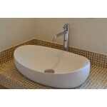 モザイクタイルをカウンターに施し、スクエア洗面ボールをのせました。