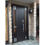 スチール調でシャープな印象の親子玄関扉に入替ました。