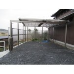 敷地形状に合わせて変形のカーポートを設置して、側面にパネルを張り風よけを作りました。 これで快適に駐車して頂けます。