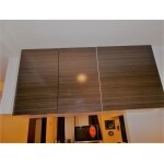 吊戸棚を設置する位置にダウンライトがあった為、弊社大工とM様とのお話し合いで、移設することにしました。吊戸棚とレンジフードとの間に出来る15㎝幅のスペースに壁を造作し、違和感なく仕上りました。