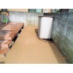 樹木などを撤去し真砂土ミックスを敷きました。 真砂土ミックスは、マサ土をセメントで固める事で、 水たまりが出来にくく、 雑草が生えにくくなるので、手入れにかかる手間を軽減し、太陽の照り返しを抑えられます。