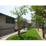 お手入れもあまりできないということで、既存の樹木をある程度残して枝抜き剪定、緑が感じられ、なおかつ、手入れがいらないように人工芝をご提案しました。
