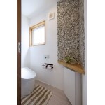 (旧株式会社ウイングでの事例です。)タイルの選定には時間をかけました。 職人さんとも実際に現場で意見を聞いて施工しました。 手洗い器のボウルや水栓はあえて導線の良い通路にやり、使い勝手のほか見た目にもこだわりました。ミラーやペーパーホルダーなどの小物はイメージに合うものをお施主様が選ばれました。素敵な空間を演出していま。