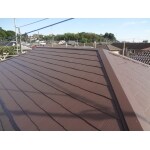 ソーラー温水器を外した未塗装部分が露出しており、前回塗装時の塗膜の軽微な剥がれが見られました。 素地露出箇所は吸い込みが止まるまでシーラーを塗布してから下塗りにべスコロフィラーHG、上塗りは水性シリコンベストⅡで施工いたしました。 また、雨漏りの症状があったため、漏水部の補修工事を実施しました。