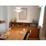 マンション特有の柱型や梁型を活かしながら、間口にピッタリのテレビボードをご提案致しました。 リビングを広げた為に、どうしても途中に出てしまう柱型を、あえてガラス棚に利用し違和感をなくしました。 統一感のある おしゃれなLDKになりました。