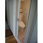 洗面所からの内開きドアは出入りに不便でしたが、入口を廊下側に移動しスムーズにトイレが使えるようになりました。