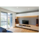 南東の段差のある和室をフラットにしてリビング、ダイニング、キッチンと一体化。吊戸を無くしてオープンにした対面キッチンからLDK全てを見渡せるようにしています。一部壁を残したコーナーには広いカウンターを設け、ご希望の自由に使える多目的スペースとしました。ここで作業に集中していてもLDKが見渡せ、家族の様子がわかります。見渡せるキッチンは逆に見られるキッチンでもあるので、収納エリアをきちんと設け、開け放していても使いやすい引戸で目隠しできるようにしました。リビングのTV台は横幅を大きくとりましたが目線の位置を避け上下に収納を分けたので圧迫感無く収納力はたっぷり。明るい色のフローリングで統一された大きなフロアはお子様を安心して遊ばせられるように。閉じられ、暗かったリビングに晴れ間がのぞいたような光溢れる空間になりました。