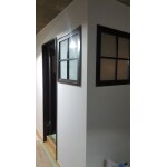 閉鎖的になりがちな寝室。 間仕切り壁に変化をつけるために、格子窓を設置。 明かり取りの役目も果たしています。