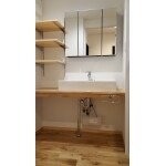 既製品の洗面化粧台ではなく、カウンター・棚なども含めて 全体的にデザインしました。