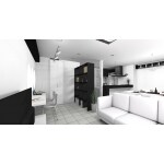 広いLDKとなりました。 白と黒をベースとしてラグジュアリーな空間を演出します。