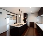Ⅱ型のキッチンにし作業スペース、収納共に増量しました。設備機器にもこだわられ、質の高いキッチンになっています。