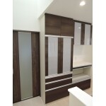 広々としたLDKになりました。キッチンの扉やカップボード類もドアや家具の色と同じような木目に揃えました。