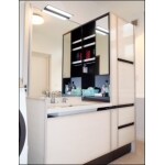 洗面脱衣は既存を生かしてリフォームでしたので、特に色のバランスを考慮してコーディネートをご提案させていただきました。