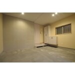 駐車スペースを車に合わせて調整 玄関アプローチはテラコッタタイル貼りとし壁はドアに合わせてジョリパット左官仕上げに。