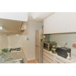 キッチンを取り換えて、サブウェイタイル風の壁紙も貼りたい。