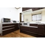 リビングとのつながりもスムーズなので、キッチンの位置は変えず、機器の交換でプランをご提案させていただきました。キッチン本体は、メーカーショールームで一目惚れされた、濃い茶色の木目調のキッチンを採用いただき、既存の空間にも馴染みつつ、高級感のある仕上がりになりました。