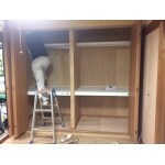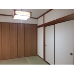 ご希望通り、収納力のあるクローゼットをご提案。 和室を明るくしたいとのことなので天井・壁はすべて白いクロスに。リビングの雰囲気を変えたいとのことなので緑色のカーテンからベージュ系のカーテンへ。