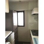 キッチンのクロスは面積も狭いので、個性的ながらも、色味を抑えた柄のクロスをお客様がお好みでセレクトして下さいました。