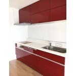| その他採用機器・設備 | LIXILリシェルSi L2400 (スライドストッカータイプ) 扉:グループ3 ディープレッド ワークトップ:人造大理石 シンプルホワイト(バリアコート無) シンク:スキットシンク コートあり ステンレス排水 水栓:オールインワン浄水栓/DSタイプ・エコハンドル 加熱機器:既存IHコンロ転用 レンジフード:CLSタイプ(シルバー)連動型 食洗機:浅型タイプ 吊戸棚H700 オートダウンウォール、フラップ折戸タイプ |