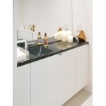 トイレはLIXILリフォレにお取替え。 壁にはエコカラットのヴィーレを施工しました。 トイレ手洗いはLIXIL キャパシアです。 扉カラーはスノーホワイト、カウンターは人造大理石のパールブラックをお選びいただきました。