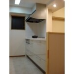元々は和室を含んだ3LDKでしたが、その和室をなくし、大きなLDK 1部屋(約15帖)にし、その一角でお仕事もなさるご要望をお持ちでした。 写真のように、スッキリとした収納を壁全体に作りつけすることにより、大量の所蔵品を収納できるようになりました。  また、閉鎖的であったキッチンも、吊戸棚が据え付けてあった壁面を一部取り除くことにより、開放感のあるキッチンとなりました。