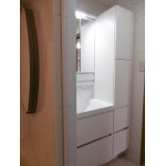 洗面台と収納キャビネットを組み合わせて取付けました。埋め込み収納は撤去しタオル掛けを付けました。