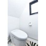 シンプルで洗練されたペーパーホルダーは、Kさん夫妻が自ら探して選んだもの。 タンク式だったトイレをタンクレスタイプに変更させて頂きました。
