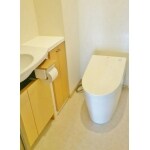 ナチュラルカラーの収納キャビネットでコーディネートし、お掃除もラクになる充実機能搭載のトイレをご提案