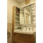 増えてしまう洗面廻りの小物を収納し、スッキリした洗面室にしたいとのご希望でした。