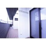 バルコニーの床には、紫外線に強く経年劣化しにくい樹脂木のリサイクルウッドデッキ中空構造タイプをご提案いたしました。