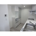 吊戸を外し、フラット体面タイプにした事で、天板の段差が無くなりスッキリとしたキッチンとなりました。また、地震や風などの水平荷重(横からの力)に抵抗する耐力壁タイプは、災害が起きても倒れる可能性が低く安心です。