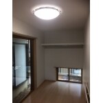 枕棚・ステンパイプの取り付けを提案、洋服をかけても下には十分なスペース確保、地窓引違サッシも片側に寄せて施工