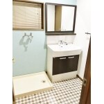 1階洗面所after 既設の洗面扉にダイノックシートを貼り、気分一新!