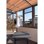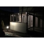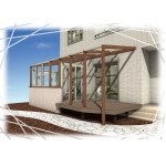 雨天時でも物干しができる事と、くつろぎ空間を両立する為に、ガーデンルームココマⅡをご提案。 オプションで、通風窓・取り外し式の物干し・室内照明も設置。 おばあちゃんのお部屋の前は、ウッドデッキとオープンスタイルのココマⅡにし、明るく開放的なスペースを確保。 アプローチの動線に柱がかかる為、デッキは隅切りカットのデザインを提案しました。