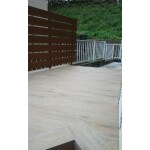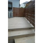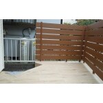 リビングの延長で使用できるタイルテラスです。 木調の樹脂フェンスも設置して プライベートな空間となりました