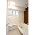 1.5坪程度の浴室を間取り変更によって1418サイズの広いユニットバスに交換することができました。 洗面室と洗濯機置場の間にはパススルー式の収納スペースを設け、使い勝手の良い空間となりました。