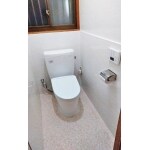 昔から使われているトイレ。 タイルもきれいな状態でお掃除をまめにしていらしたのですが、どうしてもそれが手間!! どうにかしてほしいというのがご希望。