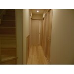 天然木の床板に張り替えて、珪藻土クロスを張り替えました。 あたたかく、ジメジメしない廊下になりました。