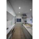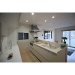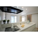 白を基調とし、とても明るく広々とした、爽やかな印象のキッチンとなりました。 調理器具にはIHをチョイス。見た目もとてもスッキリしますし、何よりお手入れが大変ラクです。 収納には大型カップボートを設置。キッチンに必要なものはすべて収納できてしまいます。引き出しのように使えるダストボックスもとても便利です。
