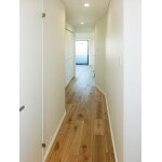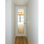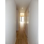 横に細長いK様邸にはリビングと洋室をつなぐ長い廊下があります。 もともと全ての建具はダークウッドのお色でしたが、今回全ての建具をホワイトに変更しました。 フローリングも貼替え、明るい廊下になりました。
