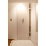 (旧株式会社ハウスドゥでの事例です。)床を白くしたことで明るくなり、帰宅した時やおもてなしする時に嬉しい空間になりました。鏡の下には、ブーツなどを履くときに便利な折りたたみの椅子を。