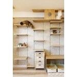 (旧株式会社ハウスドゥでの事例です。)ナチュラルで明るい雰囲気のLDK空間に。ダウンライトですっきりとした照明計画をご提案しました。キャットウォークを造作し、壁にはエコカラットを使用。消臭効果があり、クロスより傷つきにくいエコカラットは猫ちゃんがいても安心です。
